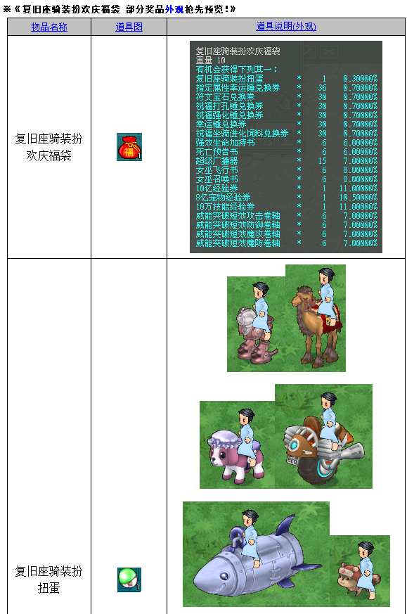 1.天使商城抢购区新增『复旧座骑装扮欢庆福袋』