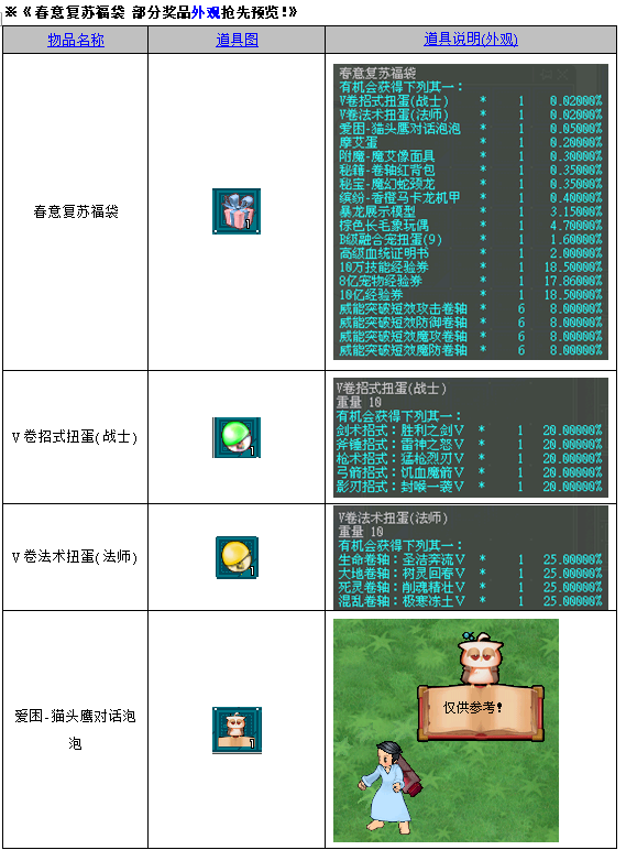 (4)将『美味肉块』搭配天使商城贩卖的『恐龙鳞片』(售价:25天使金币)交给NPC可兑换稀有的『春意复苏福袋』福袋。